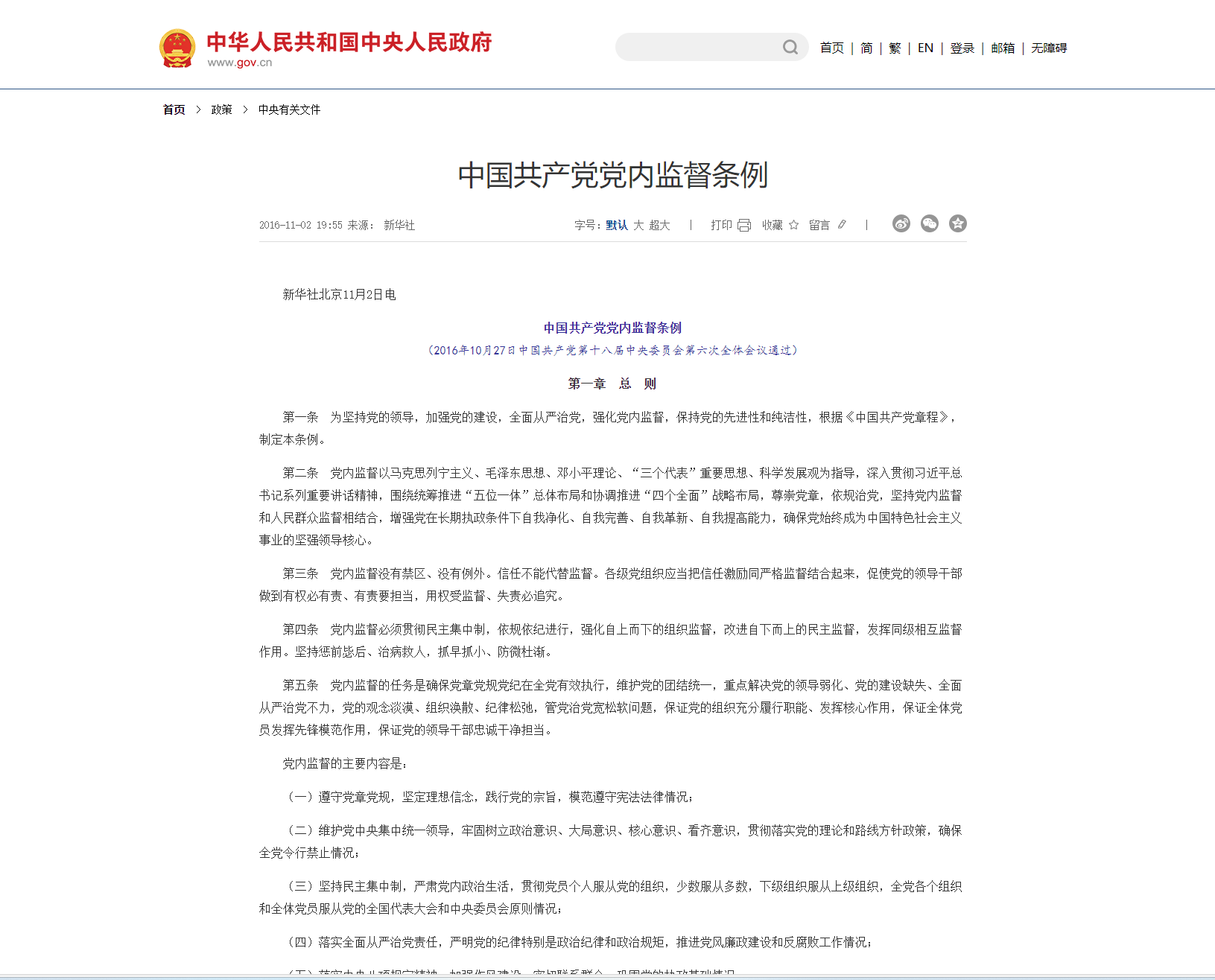 中國共產(chǎn)黨紀律檢查委員會工作條例(2021年12月6日中共中央政治局會議審議批準2021年12月24日中共中央發(fā)布) 第一章總則第一條為了加強和規(guī)范新時代黨的紀律檢查委員會工作,根據(jù)《中國共產(chǎn)黨章程》,制定本條例。第二條黨的各級紀律檢查委員會高舉中國特色社會主義偉大旗幟,以馬克思列寧主義、毛澤東思想、鄧小平理論、“三個代表”重要思想、科學發(fā)展觀、習近平新時代中國特...