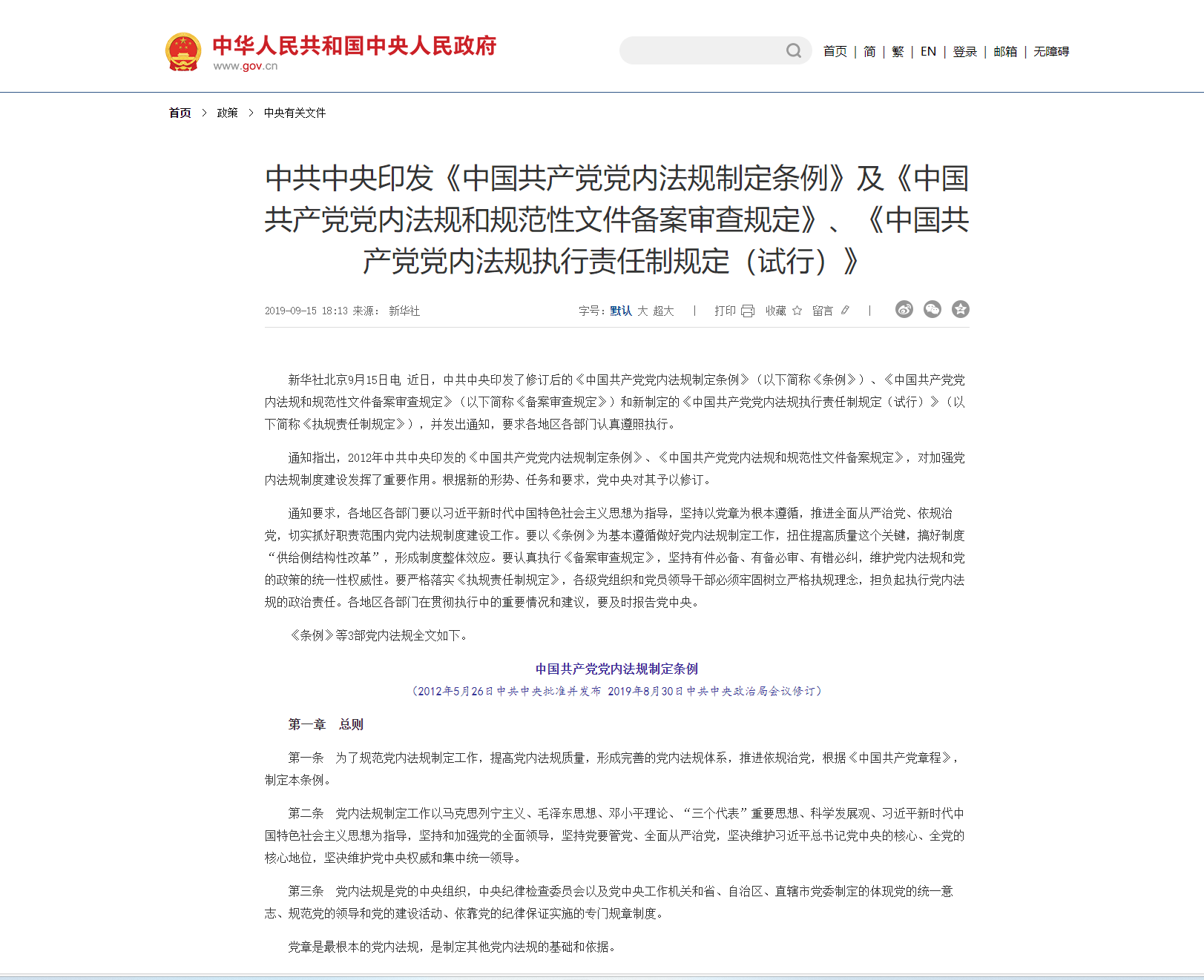推進領(lǐng)導干部能上能下規(guī)定(2015年6月26日中共中央政治局會議審議批準2015年7月19日中共中央辦公廳發(fā)布2022年8月19日中共中央政治局常委會會議修訂2022年9月8日中共中央辦公廳發(fā)布) 第一條為了全面推進黨的政治建設、思想建設、組織建設、作風建設、紀律建設,健全能上能下的選人用人機制,建設德才兼?zhèn)洹⒅艺\干凈擔當?shù)母咚刭|(zhì)專業(yè)化干部隊伍,完善從嚴管理干部隊伍制度體系,根據(jù)《中國共...