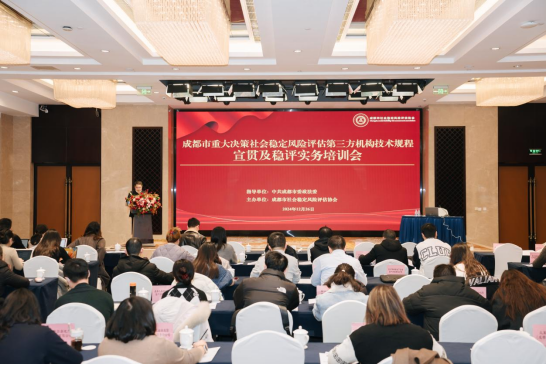 為做好新形勢下重大決策社會(huì)穩(wěn)定風(fēng)險(xiǎn)評(píng)估工作,進(jìn)一步提升全市第三方機(jī)構(gòu)社會(huì)穩(wěn)定風(fēng)險(xiǎn)評(píng)估工作質(zhì)效,成都市社會(huì)穩(wěn)定風(fēng)險(xiǎn)評(píng)估協(xié)會(huì)于2024年12月26日組織開展《成都市重大決策社會(huì)穩(wěn)定風(fēng)險(xiǎn)評(píng)估第三方機(jī)構(gòu)技術(shù)規(guī)程(2024年版)》(下稱“《技術(shù)規(guī)程》”)宣貫及穩(wěn)評(píng)實(shí)務(wù)培訓(xùn)會(huì)。市委政法委有關(guān)負(fù)責(zé)同志、協(xié)會(huì)領(lǐng)導(dǎo)及會(huì)員單位穩(wěn)評(píng)從業(yè)人員共計(jì)180余人參訓(xùn)。