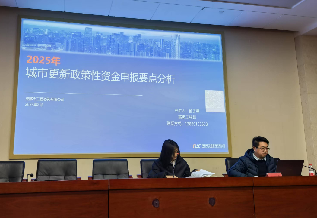 為落實(shí)國(guó)家和省市有關(guān)實(shí)施城市更新行動(dòng)的工作部署,準(zhǔn)確把握城市更新領(lǐng)域超長(zhǎng)期特別國(guó)債、地方政府專項(xiàng)債、中央預(yù)算內(nèi)資金申報(bào)要求,圍繞城市更新八大任務(wù)做好項(xiàng)目包裝、儲(chǔ)備和申報(bào)工作,最大限度承接國(guó)家政策紅利,助力成都市經(jīng)濟(jì)社會(huì)高質(zhì)量發(fā)展,2月13日,成咨公司受成都市住建局邀請(qǐng)開(kāi)展2025年城市更新政策性資金申報(bào)專題培訓(xùn),市住建局、各區(qū)(市)縣住建局和城市更新工作具體實(shí)施單位相關(guān)工作人員共計(jì)100余人參加本次培訓(xùn),本次培訓(xùn)會(huì)得到了參會(huì)單位的高度認(rèn)可。公司黨支部書記、執(zhí)行董事、總經(jīng)理陳崎虎及公司城市有機(jī)更新項(xiàng)目組參與培訓(xùn)。