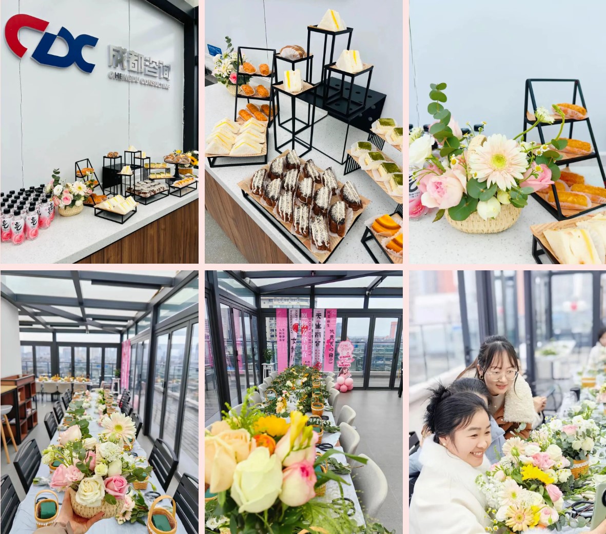 在花藝創(chuàng)作的同時,精致的甜品和飲品也為活動增添了一份甜蜜。大家一邊品嘗美味的蛋糕、馬卡龍和咖啡,一邊與同事們暢聊生活與工作,現(xiàn)場氣氛輕松愉快,歡聲笑語不斷。